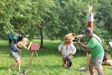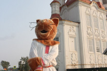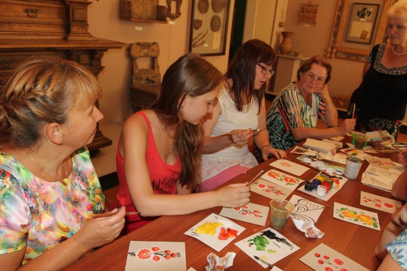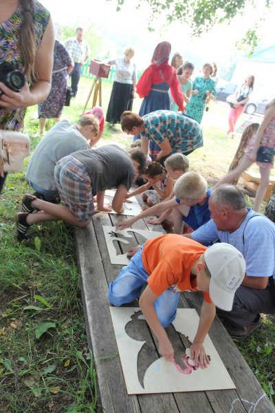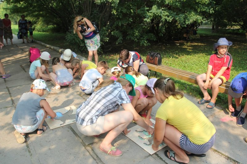 А дети при помощи разноцветных мелков и трафаретов проложили дорогу от парка, где установили арт-объект, до здания музея. Теперь грифоны и львы, сирины и гарцующие кони сопровождают гостей в музей и напоминают о тех временах, когда люди верили в реальность существования мифических существ и привлекали их на службу покоя домашнего очага, о чём свидетельствуют памятники народной живописи.