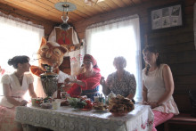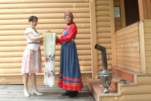 Незаметно пролетело четыре часа пути и, наконец, первый пункт назначения достигнут. У порога местного музея дымился самовар, а хозяйка его, Сысоева Елена Сергеевна, встречала гостей хлебом-солью.