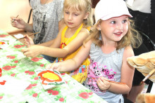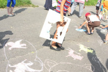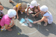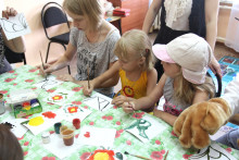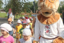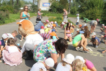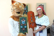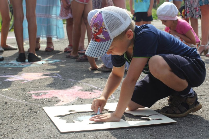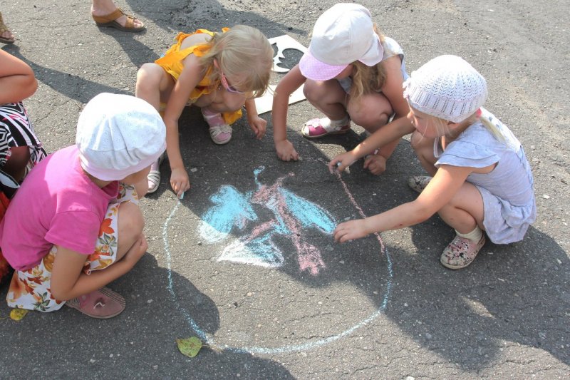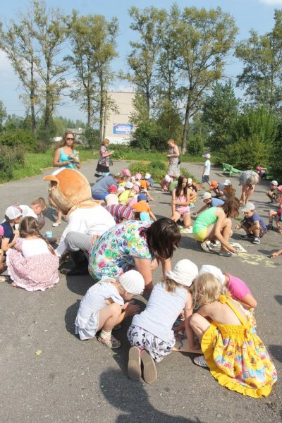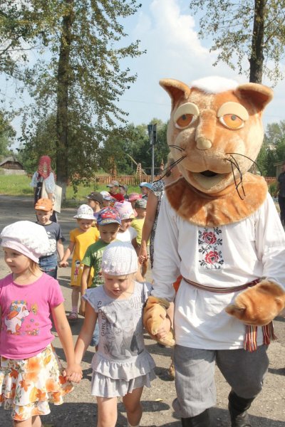 И вновь инициативу перехватил большой затейник Кот Семён. Он предложил всем сфотографироваться на память и, конечно, поиграть! В то время, пока народный мастер России Ольга Гладышева занималась с детьми и взрослыми изучением росписей, Кот развлекал дошколят. Ребята с большим усердием расцветили мелками асфальт. На одной из городских площадей вырос сказочный лес, в котором  прячутся таинственные грифоны, отважные львы, фантастические сирины и кони. А чтобы им было не так одиноко, детвора нарисовала море солнышек, звёздочек, подселила к ним друга филина, а для пригляда за всем поставила Кота Семёна.