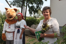 Музейный Арт-десант высадился у здания Харовского историко-художественного музея. Здесь команду проекта «Дорогами грифонов и райских кущ» ожидала работа. Дружно взявшись за дело, справились со всеми испытаниями. И вот сказочный грифон уже парит над Харовской землёй, а услужливые львы, написанные рукой мастера народных промыслов Вологодской области - Петровой Галиной Анатольевной, зорко глядят во все четыре стороны. Кот, увидев, как удачно вписался арт-объект в зелёную зону у входа в музей, от удовольствия сказал: «Мяу!». И с ним согласилась начальник управления культуры Харовского района Рябкова Наталья Николаевна. Она приветствовала всех собравшихся и подчеркнула важность  сохранения традиций, в том числе и народной живописи. Заметила, что харовчане знают свою роспись и выразила благодарность за приглашение в проект.