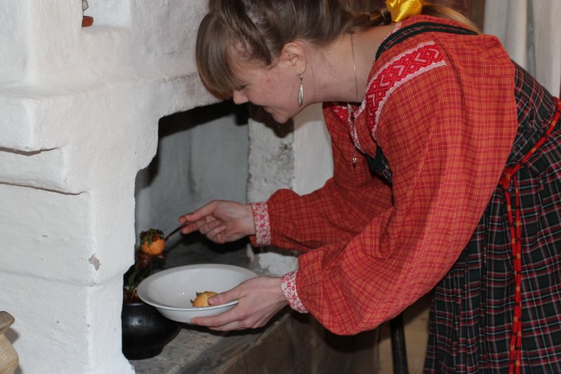 Кто-то из посетителей музея оказался в самой гуще событий. Женихи приехали невесту выкупать, ведь с Фомина воскресения в церкви разрешалось Таинство Венчания. Другие гости застали почтенную хозяйку Аграфену Семёновну в момент приёма молодожёнов - дорогих дочки и зятя.