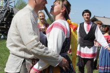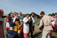 День 8 мая выдался пронзительно ярким и солнечным. В воздухе витала светлая радость, и всё располагало к праздничному веселью. Музей «Семёнково» в лёгкой дымке свежей зелени смотрелся по-новому, а костюмы «жителей деревни» играли великолепием красок и фактур.