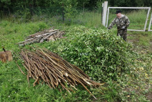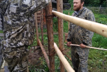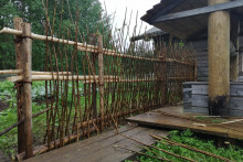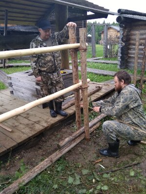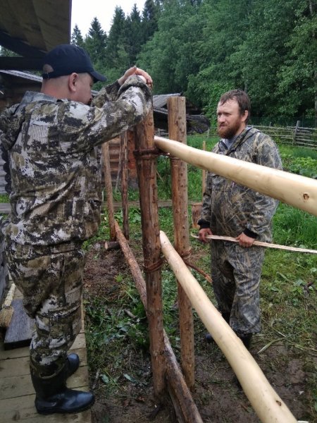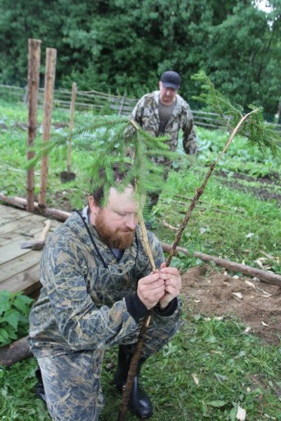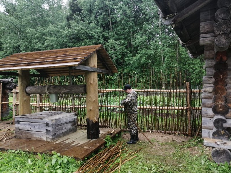 Невзирая на непогоду, сотрудники музея в спешном порядке заготавливали древесный материал и мастерили деревенский плетень. В качестве вертикальных опор использовали устойчивую к гниению ель, обвязку делали гибкими молодыми ёлочками, на них уложили поперечины из осины, а из ивового прута сплели плотную стенку. Теперь появилась надежда, что капуста к осени накатится, а это значит, что состоятся программы осеннего цикла: будем вместе с вами капусту рубить и солить на долгую зиму.