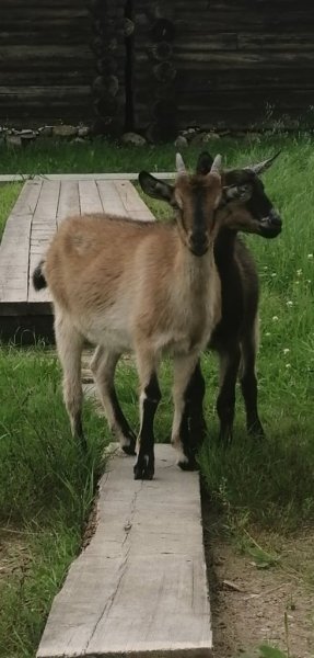 В музей, как на летнюю дачу, наконец, пожаловали молодые козочки. Они резво стучат копытцами, оглядываются по сторонам и изучают новую обстановку.