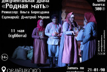11 мая – открытие III театрального сезона в Антропологическом театре музея «Семёнково». Спектакль «Родная мать» (Бронирование билетов по ссылке).