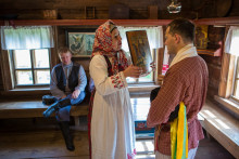 • Интерактивные зарисовки: «Без матери дитя – полный сирота» - социально-сельский сход; «Родина-мать, умей её защищать» - рекрутский обряд; «Дети – благодать наша» - вологодские сказки, присказки и потешки; «Кто на Казанскую женится – счастлив будет» - выкуп невесты