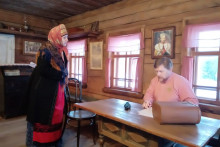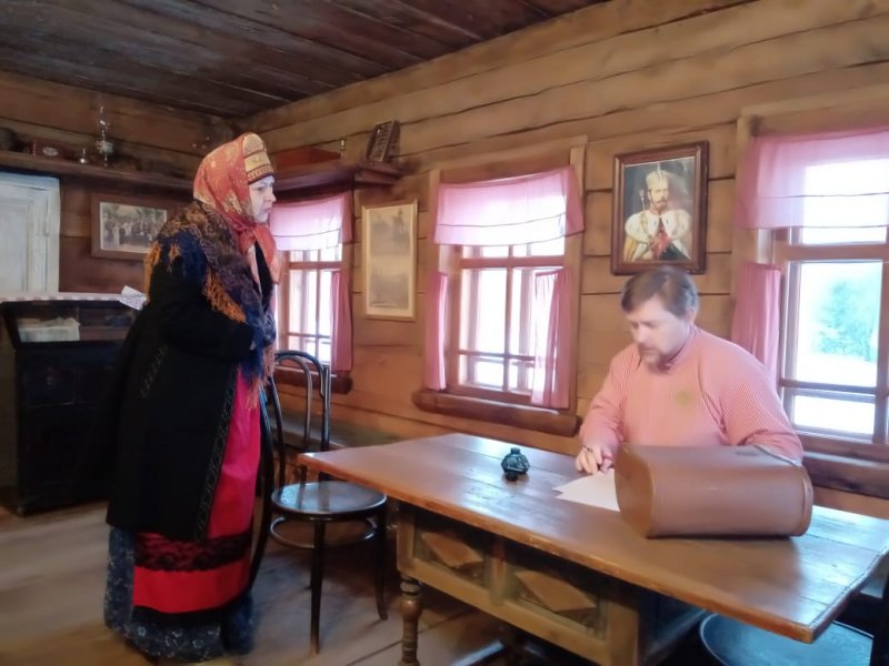 Музейная деревня ожила, наполнилась смыслами. Гости стали свидетелями и соучастниками событий, восстановленных на основе обращения к документам крестьянского происхождения. Специалисты музейного дела из Карелии живо реагировали на происходящее, сопереживая и комментируя увиденное. Далее в рамках семинара выступила заведующий музеем Наталья Киршина. Она расставила основные акценты, связанные с развитием музея, поиском формата предъявления исторического прошлого северной деревни посетителям. Дмитрий Мухин поделился опытом создания антропологического театра в музее, а Степан Анкудинов познакомил с инновационным проектом «Музейный Encounter», направленным на привлечение молодёжи в музей.