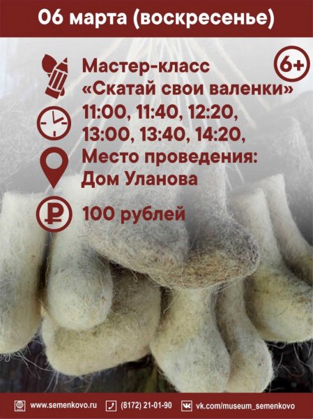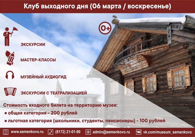 6 марта музей «Семёнково» работает в штатном режиме и приглашает гостей на программу Клуба выходного дня!