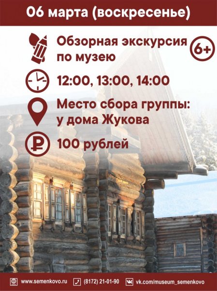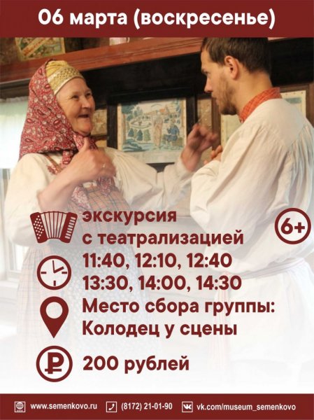 Телефон для справок: (8172) 21-01-90. До встречи в музее «Семёнково»!