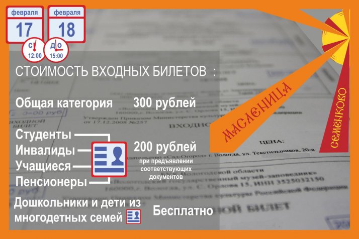 Друзья! Если вы полны решимости проводить масленицу с огоньком и задором в "Семёнково", но при этом не желаете терять драгоценные минуты, простаивая в очереди за билетами на входе в музей в день праздника, то эта новость для вас! Открыта предварительная продажа билетов!