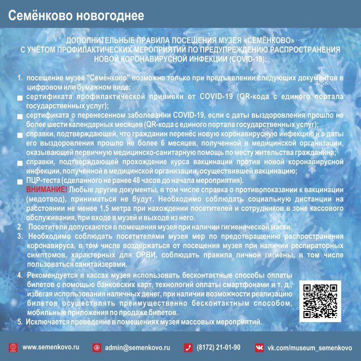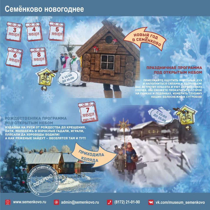 Друзья! С 3 по 8 января 2022 года музей "Семёнково" ждёт вас!