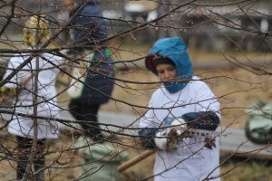 «На улице снег и ливень, а у нас субботник. Готовимся к труду и обороне», - иронично заметила сотрудник музея Ольга Осовская, разместив пост в социальной сети ВКонтакте в 11.57 по Московскому времени. Ровно в 12.00 часов герои дня собрались в центре музея. Настроение и боевой дух собравшихся поддерживали бодрящие мотивы хорошо известных песен, раздающиеся в противовес заговору непредсказуемой северной весны. Динамичная официальная часть, распределение обязанностей, общее фото на память, и вот уже кипит работа: мелькают грабли и лопаты, снуют мётлы, и наполняются мешки мусором. Взявшись за дело всем миром, быстро управились с предусмотренным объёмом работ.