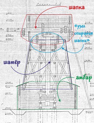 «Семь раз отмерь – один раз отрежь», - гласит народная мудрость. Когда речь заходит о воссоздании утраченного механизма, приходится вновь и вновь сомневаться и перепроверять проектные решения. Мельница из Старого села Вологодского района, согласно чертежам (1990 г.) и имеющимся фотографиям, имела любопытную конструкцию: массивная шапка (с учётом горизонтального вала и лопастей) опиралась на сруб незначительных размеров. У реставраторов появились сомнения и вопросы по поводу устройства узла опоры шапки мельницы. С вопросом: как же было устроено крепление, чтобы шапка (воробея) не упала, сотрудники музея «Семёнково» обратились за консультацией к ведущим специалистам в области деревянного зодчества России.