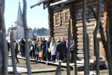 8 апреля в заключительный день работы Школы музейного мастерства музей «Семёнково» приветствовал гостей ярким весенним солнцем. На фоне прозрачной небесной лазури отлично читались силуэты деревянных построек.