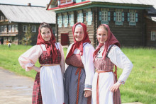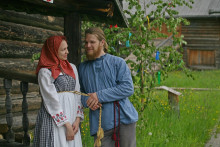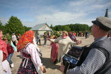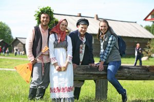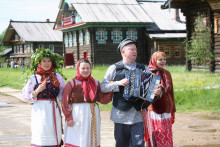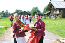 На Троицкое Заговенье небеса вынесли свой приговор. Проливной дождь встречал гостей праздника «Троицкое гуляние» и провожал прямиком до Георгиевской церкви. Судьба деревянного шатрового храма всегда вызывает интерес у посетителей, но заглянуть внутрь него предоставляется лишь в особые дни. И хоть в нём до сих пор отсутствует интерьер, он, украшенный зеленью, выглядит в эту пору удивительно нарядным и уютным. После непродолжительной экскурсии и богослужения в храме воцарилась удивительная гармония. Духовная музыка в исполнении Хоровой академической капеллы им. В.М. Сергеева умиротворила и возвысила мысли слушателей.