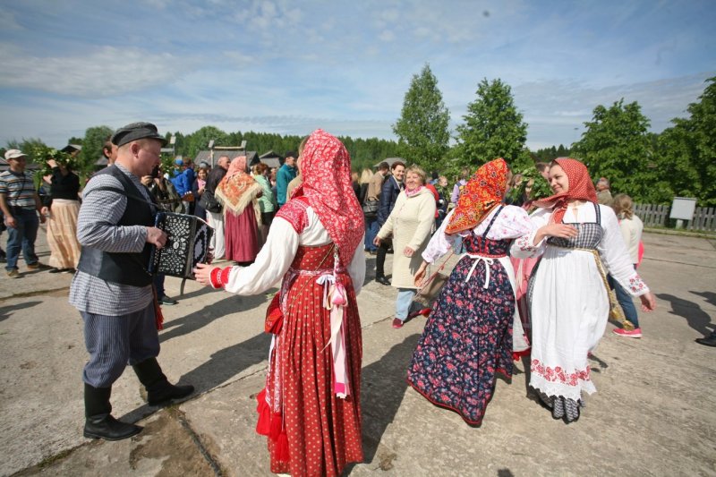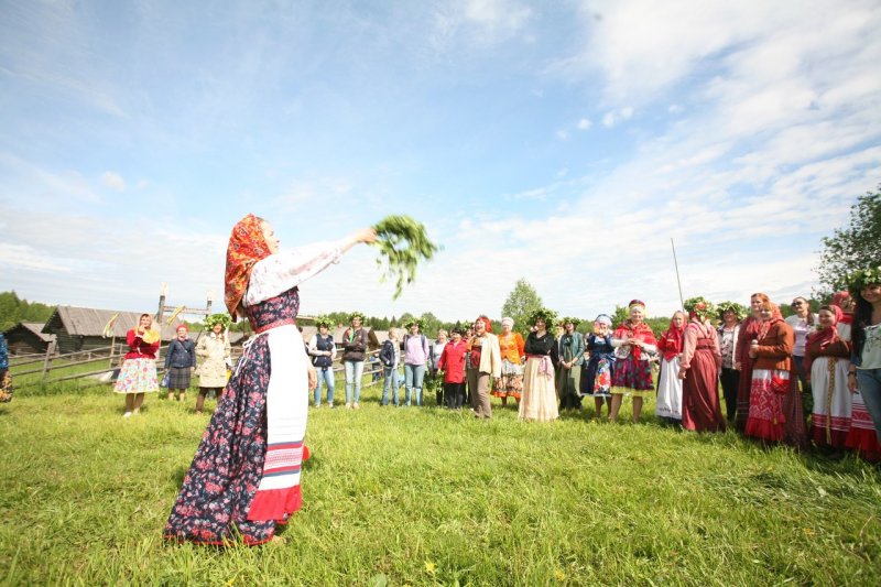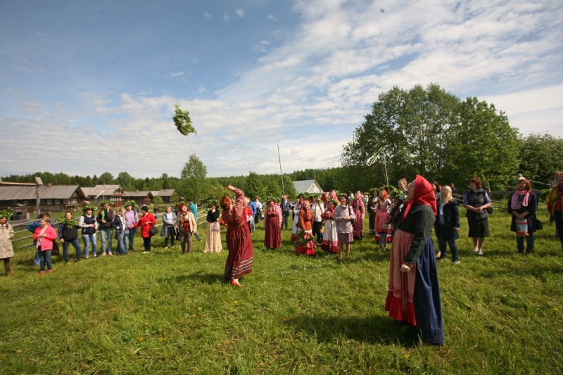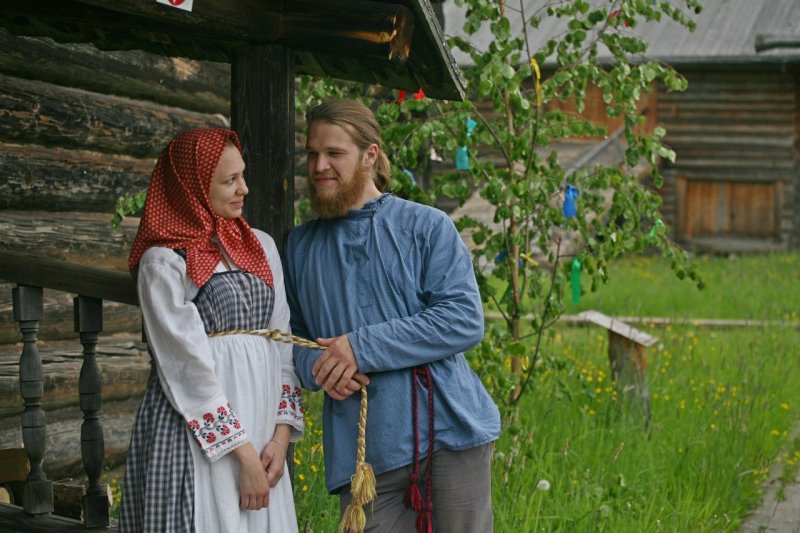 Парни перед девками щёголями выхаживали, пиджака и того не пожалели, в местной лавке заложили, чтобы с гармошкой на гулянье ходить. И ни одна «игровая» (девушка) без гостинца не осталась. Парни не скупились на пряники, ленты с охотой покупали в деревенской лавке. Ленты яркие в косах да венки берёзовые на головах – глаз не оторвать!