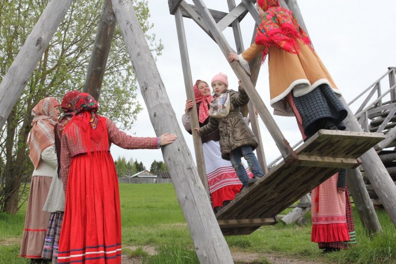 Вся деревня после обеда на улицу высыпала. На качелях народ!!! Парни девок качают, девки частушки поют. Смех! Веселье! Малые да и большие – все яйца по желобам катают: у кого дальше укатится, кто больше всех насбивает? Торговля кипит: кому лент, заколок, мыльца прикупить, а кому и так поглядеть.