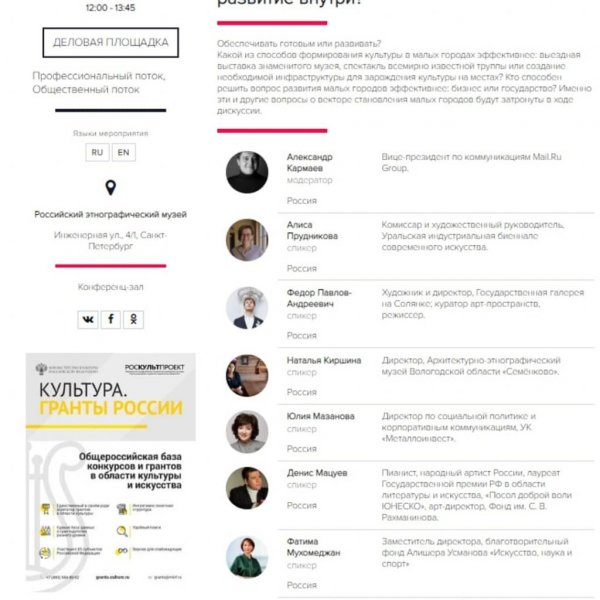 Участники дискуссии обсудили возможности развития культурной жизни в небольших городах, роль государства и бизнеса в этом процессе, значение культуры для создания комфортной и устойчивой городской среды.