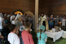 Троица – это большой Православный праздник. В 13.00 празднично украшенная травой и березами Георгиевская церковь встретила гостей. Иерей Михаил Болотский из церкви Антипия, епископ Пергамский, провел водосвятный молебен, где каждый мог послушать богослужение и осветить березовые веточки.