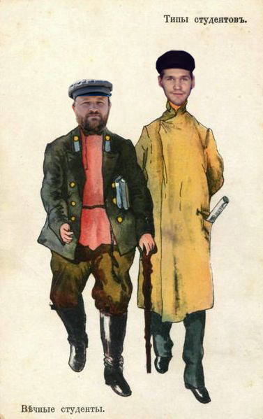 В качестве подарка прилагаем немного видоизмененные, но очень милые открытки «Типы студентов», автором которых является талантливый карикатурист начала XX века Владимир Федорович Кадулин.