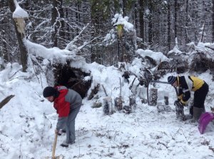 Высоко в воздух подлетают клубы снежной пыли, весело наперебой стучат топоры - то беспокойные «семёнковцы» прокладывают путь к Деду Морозу. Уже скоро тропа, ведущая в Великий Устюг, полная неожиданностей и сюрпризов, будет готова. Главное, успеть подготовиться к встрече новогоднего волшебника. Он обязательно должен появиться в своей Кладовой секретов. Вот и трон, и волшебные сундуки уже стоят, а на повети дома выросла пушистая ёлка. Всё как в сказке. Осталось ждать недолго, скоро она оживёт.
