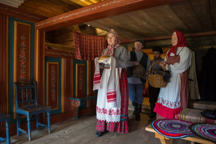 The program includes: telling the story of the traditions and superstitions associated with construction of a new house; acquaintance with a farmer’s family at the time of their moving to a new house; exploration of the new housing, i.e., rolling the bread, money-spreading, gifting the new occupants, treating with kvass (mildly alcoholic drink made of fermented rye bread, yeast or berries) and bier.