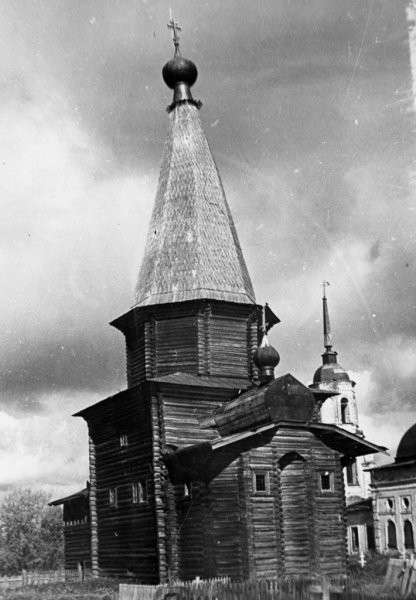 Шатровый деревянный холодный Георгиевский храм был построен в кон. XVII-нач. XVIII вв., «на месте старой деревянной церкви 1588 года постройки, расположенной в верховье реки Уфтюги».