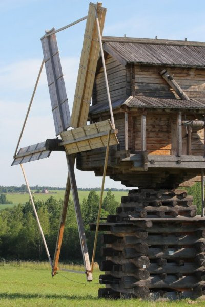 Ветряные мельницы используют энергию ветра для совершения полезной работы. Принцип работы довольно прост: ветер вращает крылья, которые заставляют вращаться горизонтальный вал. Через систему шестерней горизонтальный вал приводит в движение жернова на вертикальном вале.
