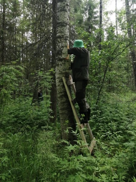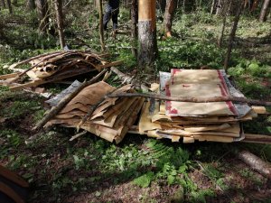 В начале июля «береста бежит». Так говорили крестьяне о времени, когда береста с лёгкостью отделяется от луба. В этой связи команда музея в соответствии с договорённостью с ООО «Вологодский лес» выдвинулась на заготовку материала. Музейщикам в распоряжение была выделена делянка в лесу, предназначенная под скорую вырубку. В течение дня мужчины занимались непривычным для себя делом: на уровне высоты поднятой руки делали вертикальный надрез ножом вниз и аккуратно снимали один пласт коры за другим. Лишь стоило приложить немного терпения и усилий, как широкая лента бересты оставалась в руках. Так удалось обеспечить музей материалом в достаточном количестве для ремонта кровель нескольких амбаров и проведения мастер-классов по берестоплетению на год вперёд.