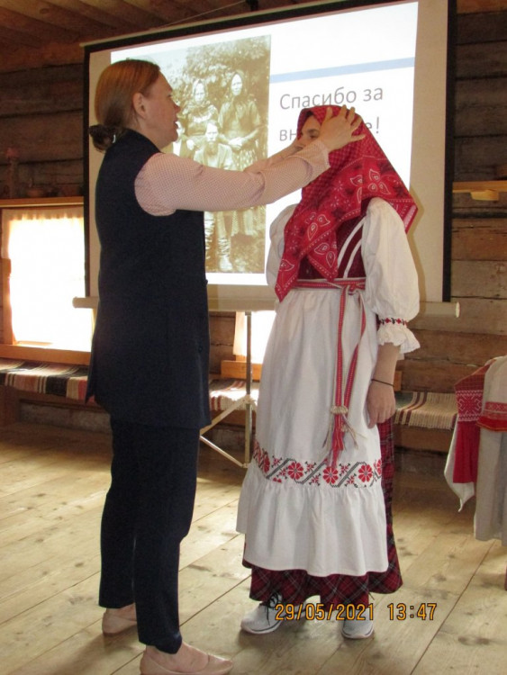 Следующим этапом погружения стала лекция с элементами практикума "Традиционный народный костюм". Завершилась встреча мастер-классом по ткачеству и изготовлению сувенирной набойки.