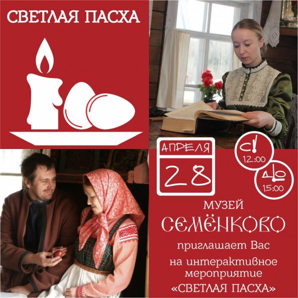 28 апреля – интерактивная праздничная программа «Светлая Пасха». Приглашаем всех разделить с нами радость этого дня, прикоснуться к народным традициям и ощутить полноту жизни!