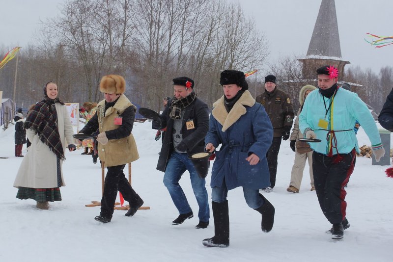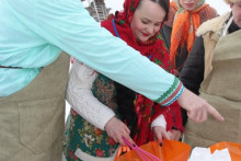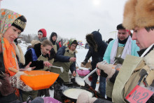То, что первое блюдо на масленицу блины, знают все. Но умеют ли молодые жёны их выпекать - вопрос. Именно это и проверяли устроители программы в первом конкурсе «Хозяйка у печи – блины на стол мечи». Молодухи не растерялись и на предложение замесить тесто - быстро справились с ним. Ни холодный колючий ветер, ни любопытные взгляды посетителей музея не сломили энтузиазм участниц. И вот уже на открытом огне жарятся первые блины на радость мужьям и не только им.