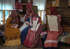 К Улановым сваты приезжали – дело важное справляли. Вместе с гостями Марью запросватали, о свадьбе сговорились… Затем к Жуковым ходили, в сарафаны народные рядились, на прялках прясть учились. У Поповых сказки бабушки Дины слушали, пестушки учили, смеялись, о житейских премудростях говорили.