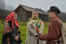 Ранним серым утром собрались сотрудники и волонтёры музея в одном из крестьянских домов. Достали из сундуков праздничные сарафаны и рубахи, заправили прялки, затопили печи, расправили меха на гармони и замерли в ожидании гостей. Казалось, в такой хмурый осенний день только дома сидеть, из дома не показываться…