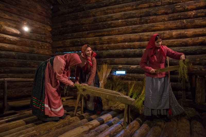 Повезло «деревне Семёнково» - теперь у нас целых две мельницы! И обе работают, зерно в муку перемалывают – на всю округу стук стоит. Досталась и гостям работа: крылья мельницы крутить помогали да муку мололи. А потом лён с девушками трепали, пряжу чесали, дожинки справляли, сноп-«пожинальницу» наряжали, на молодёжной бесёде пели да плясали. Из бересты плели, куклу-крупеничку вязали, да ткацкий стан заправляли.Хоть и не порадовала погода тёплым солнышком, отогрелись гости добрым словом, понаслушались «долгих» песен.
