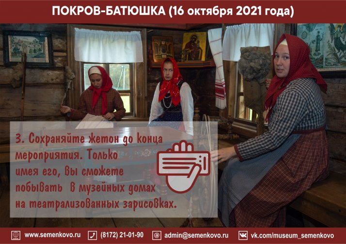 3. Сохраняйте жетон до конца мероприятия. Только при его наличии, вы сможете побывать в музейных домах на театрализованных зарисовках.