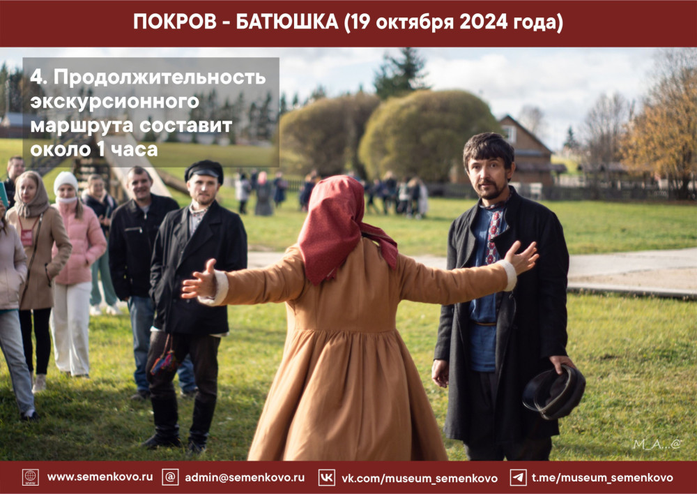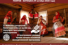 Уважаемые посетители! Приглашаем вас 19 октября в 12 часов на праздничную этнографическую программу «Покров - Батюшка»!