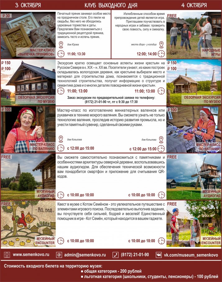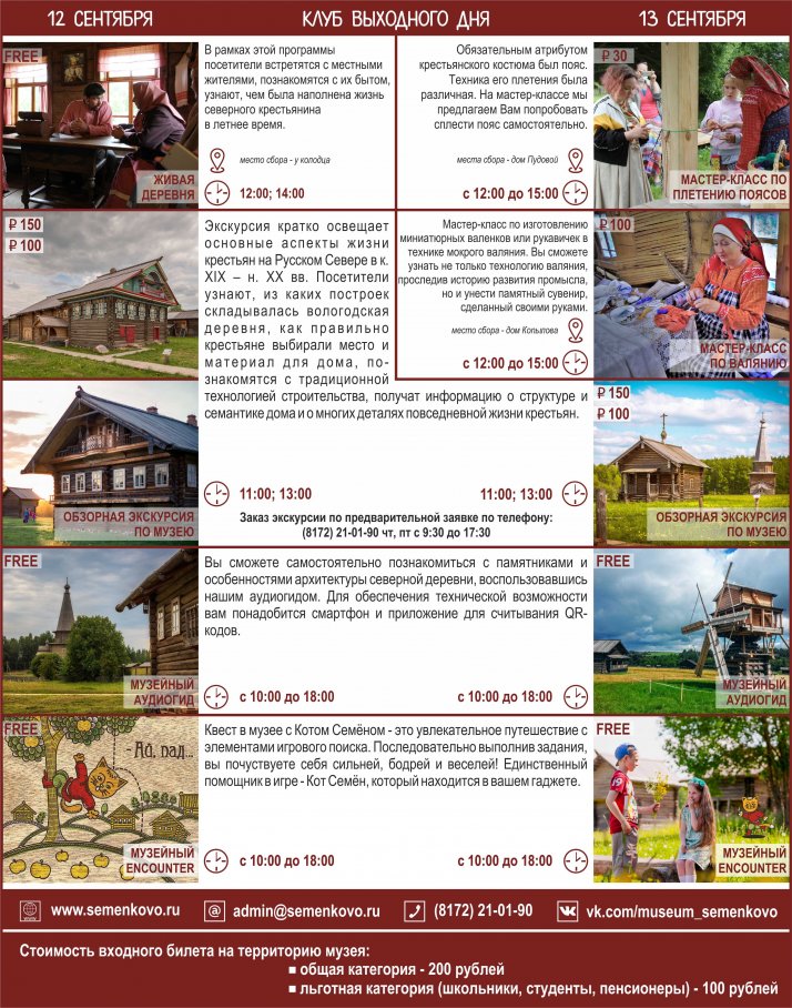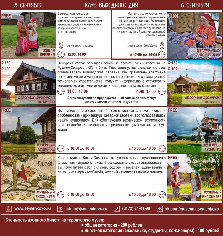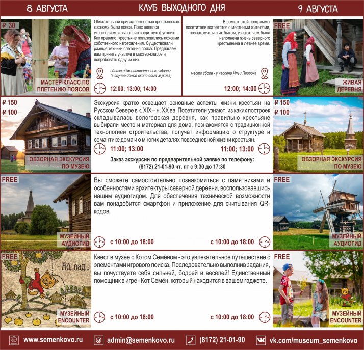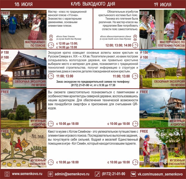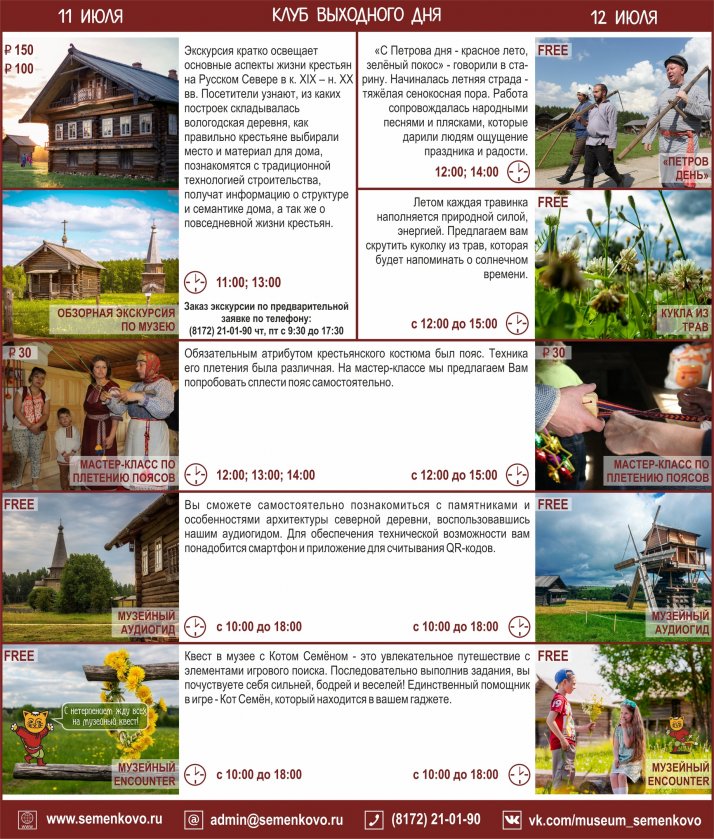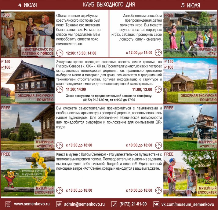 Приглашаем провести выходные в музее под открытым небом среди пряной травы, полевых цветов и творений рук человека - народной деревянной архитектуры.