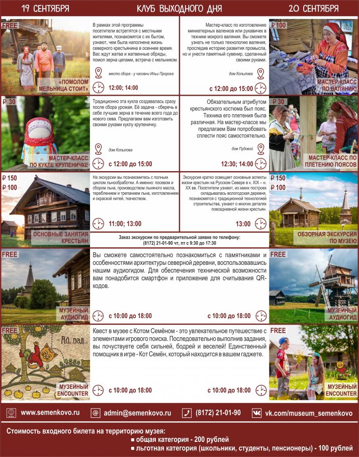 Программа "Клуба выходного дня" на 19 и 20 сентября 2020 года