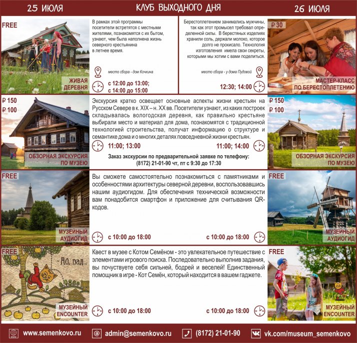 Программа "Клуба выходного дня" на 25 и 26 июля 2020 года