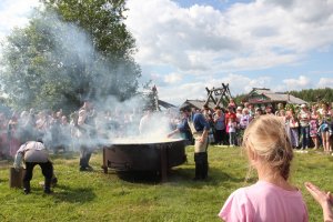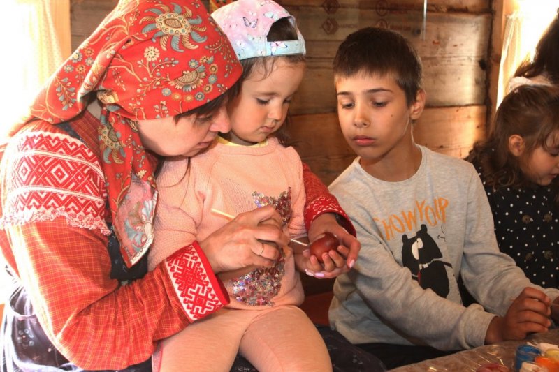 А какой народный праздник без братчины? За общим столом и беседа спорится, и люди становятся ближе и родней друг другу. Вот и старались музейщики заодно с гостями успеть к ней пироги напечь, яйца выкрасить в молодой траве, яичню-селянку на большой сковороде приготовить… Завершилось гуляние общими хороводами вокруг берёзкки, поцелуйными играми, народными забавами!