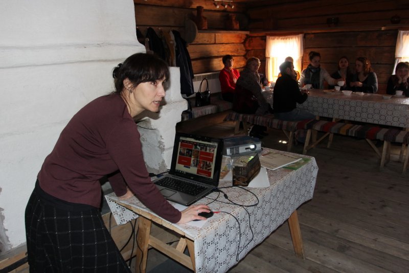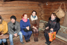 Для многих, из приехавших на методическую учёбу, это было первое знакомство с музеем «Семёнково». Наталья Киршина поведала о единственном на территории Вологодской области музее под открытым небом, истории его формирования, проблемах развития и ближайших перспективных планах. Особое внимание было заострено на результатах проекта «Строим вместе!» - прекрасном примере взаимодействия с бизнесом, итогом которого стала спасённая ветряная мельница из деревни Борок Тотемского района и строящаяся поблизости от неё ещё одна аэродинамическая конструкция. Гости посетили «Общественную квартиру», посидели за партами в «Сельской школе». Не обошли вниманием и дом Копылова из деревни Коростелёво. Такой выбор маршрута не случаен. Именно к этим объектам последнее время было приковано пристальное внимание общественности и научного сообщества в связи с реализацией крупных проектов «Мы, собравшись, постановили...» и «Сохраним русский дом на Русском Севере».