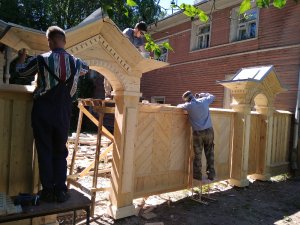 Сказано-сделано! В мае - июне силами сотрудников отдела по реставрации памятников деревянного зодчества были осуществлены работы по устройству нового забора и палисадника.