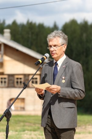 Александр Борисович Фролов - глава района, в обращении к сотрудникам музея заметил, что открытие дома Копылова из д.Коростелёво состоялось благодаря совместным усилиям неравнодушных и увлечённых специалистов. "Ваш опыт по сохранению северной архитектуры и сохранению деревянного зодчества Русского Севера, способствует укреплению духовности и несёт просветительскую миссию... Желаю вам успешной исследовательской работы и воплощения интересных проектов". Также был преподнесён памятный подарок - тканый половик, который попадёт в будущую экспозицию дома.