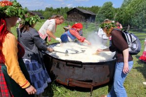 Состоялось и уличное гулянье с частушками под гармошку, и игры, и хороводы, и пляски, и обход дворов для сбора яиц к братчине, и забавы на качелях, и катание на лошадях, и мастер-классы по плетению березовых венков, народным промыслам, росписи яиц, росписи скатертей для праздничного стола, традиционной выпечке, и игры в «Лапту», «Катание яиц». Но кульминацией мероприятия, несомненно, стали подготовка и проведение общей братчины: на кострах варились и красились яйца, запекался картофель, нарезались овощи, жарилась гигантская яичница-селянка.