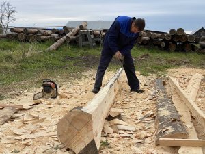 промышленной зоне музея полным ходом идёт рубка первого венца, а также охлупня. Через неделю подготовительные работы будут завершены, и реставраторы приступят к следуюшему этапу.