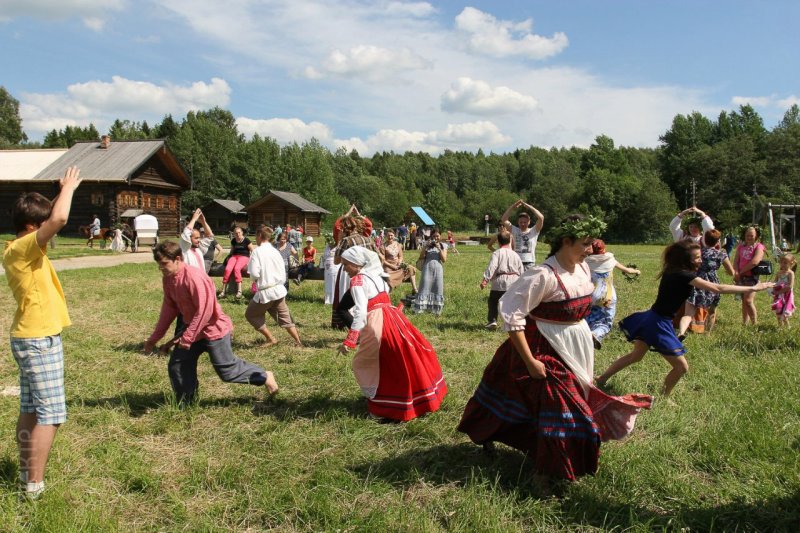 С самого утра деревня Семенково зажила приготовлениями к светлому празднику Троицы: девушки украшали дома веточками березы, наряжали лентами, парни готовили игры и увеселения для гостей, а бабоньки и мужики ставили братчину - топили самовар, варили яйца, делали угощение на всю деревню.