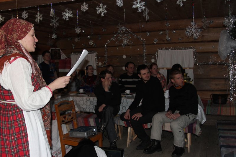 Мы уже успели убедиться, что все они незаурядные личности - яркие, талантливые, готовые учиться и экспериментировать. Поэтому, по сложившейся традиции, встреча началась с ролевой игры «Приезд женихов». Выбор материала не случаен, ведь именно в «зимний мясоед» (время между Рождественским и Великим постами) чаще всего в прежние времена совершались свадьбы. И вот наши друзья неожиданно для себя, в соответствии со жребием, разделились на сторону жениха и невесты. Кто-то стал тысяцким, а кому-то выпала роль родителей молодых...