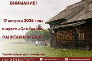 ВНИМАНИЕ! Сообщаем вам, что 17 августа 2025 года (ВОСКРЕСЕНЬЕ) музей «Семёнково» будет закрыт на санитарный день.