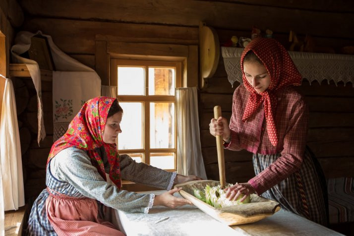 В программе: знакомство с традицией помочей на Русском Севере, угощение пареной репой, участие в коллективных видах работ (рубка, засолка капусты, колка дров, укладывание поленницы), подвижные игры.